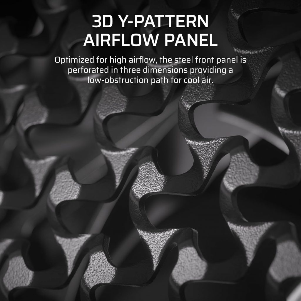 The heart of the performance is its airflow. Corsair has optimized the perforated steel front panel with a three-dimensional “Y” pattern. This design ensures a cold air path with minimal restriction, significantly enhancing overall thermal performance.